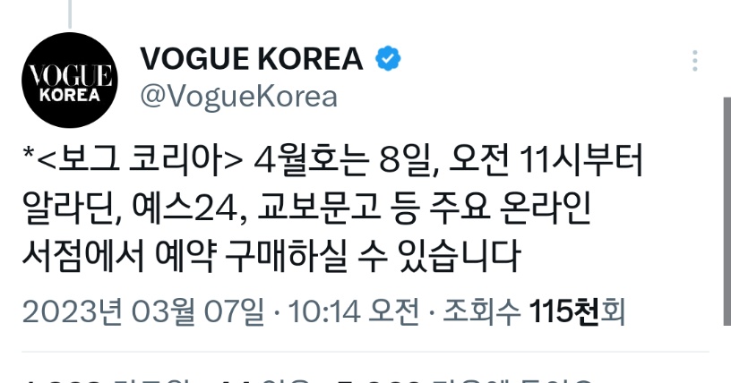 방탄소년단 지민이가 나온 <보그 코리아> 4월호는 오늘 8일 (내일입니다) 오전 11시부터 알라딘, 예스24, 교보문고 등 주요 온라인 서점에서 예약 구매하실 수 있습니다.